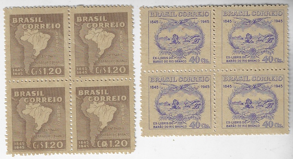 | 53971 | 197 e A-59, Centenário de Nascimento do Barão do Rio Branco, quadras, novo com goma amarelada (13,6 UF) | 14,00 | Foto |