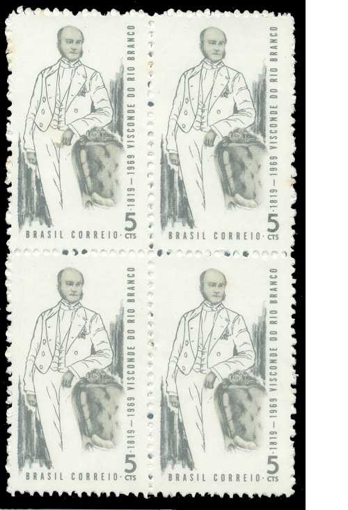 | 54371 | 628, 150 Anos do Nascimento do Visconde do Rio Branco, quadra, novo sem goma (2 UF) | 7,00 | Foto |