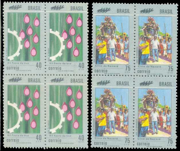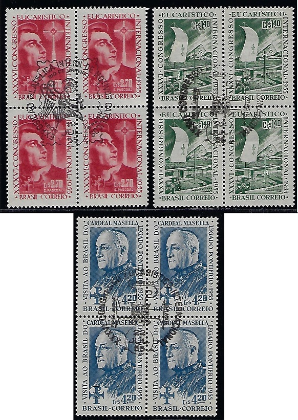 | 82721 | 365/367, 36º Congresso Eucarístico Internacional e Visita do Cardeal Bento Aloisi Masella, quadras com carimbos comemorativos | 20,00 | Foto |
