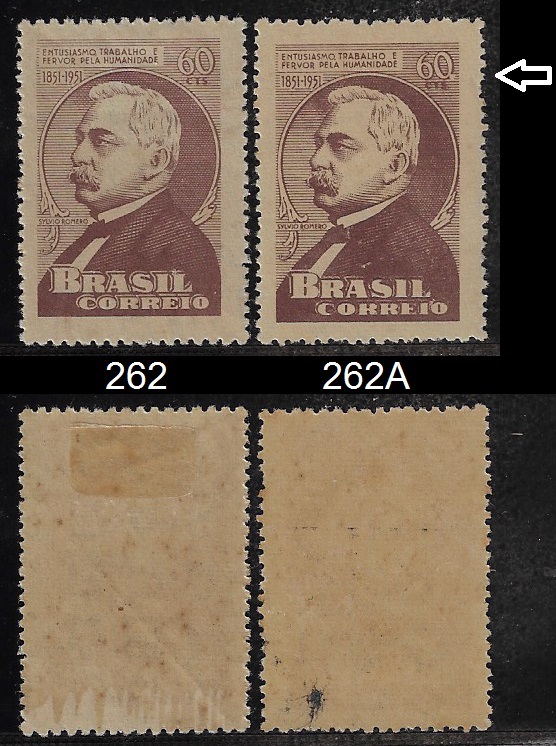 | 60940 | 262 e 262A, Centenário do Nascimento de Sílvio Vasconcelos da Silveira Ramos Romero, escritor, jurisconsulto, sociólogo, variante com um ponto em "60", sem uso (6,5 UF) | 6,50 | Foto |