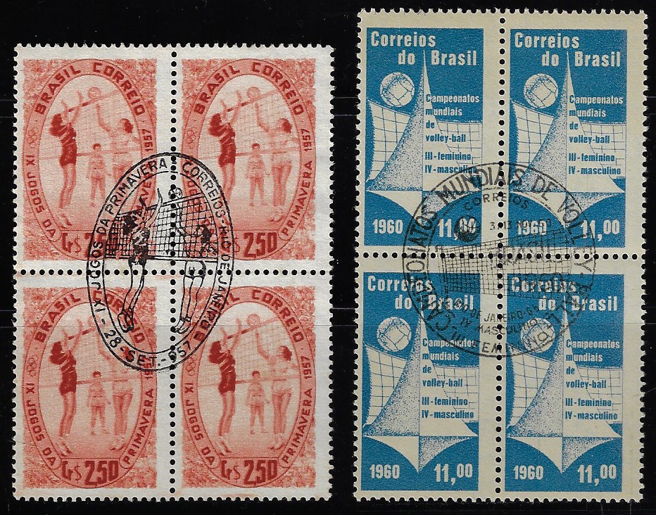 | 73297 | 392 e 454, Jogos da Primavera e Campeonato Mundial de Volleyball, masculino e feminina, quadras com carimbo comemorativo | 10,00 | Foto |