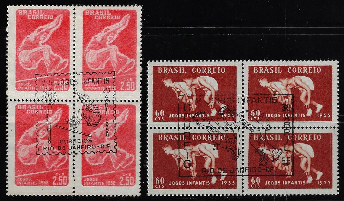| 73526 | 363 e 407, Jogos Infantis, Salto em Altura, Atletas, Corrida, Esporte, quadras com carimbo comemorativo | 10,00 | Foto |