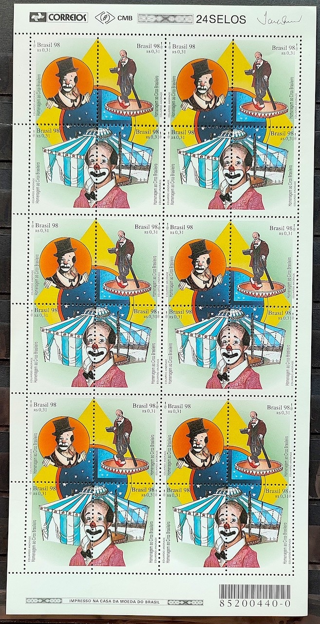 | 78401 | 2085/2088, Homenagem ao Circo Brasileiro, folha completa, mint (24 UF) | 24,00 | Foto |