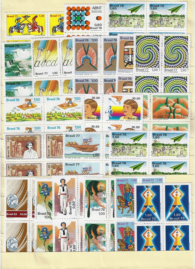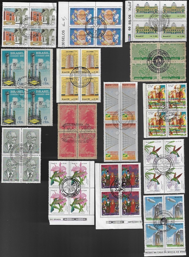 | 81583 | Acumulação, 20 quadras de selos comemorativos do Brasil, mint | 20,00 | Foto |