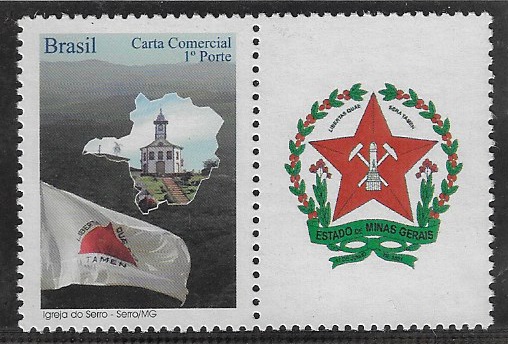 | 81141 | 2856, selo personalizado Mapa e Bandeira de Minas Gerais alusivo ao brasão do estado, café e mineração | 10,00 | Foto |