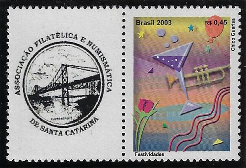 | 81157 | 2540, selo personalizado Festividades emitido em 2003 alusivo a Associação Filatélica e Numismática de Santa Catarina, ponte Hercílio Luz | 10,00 | Foto |