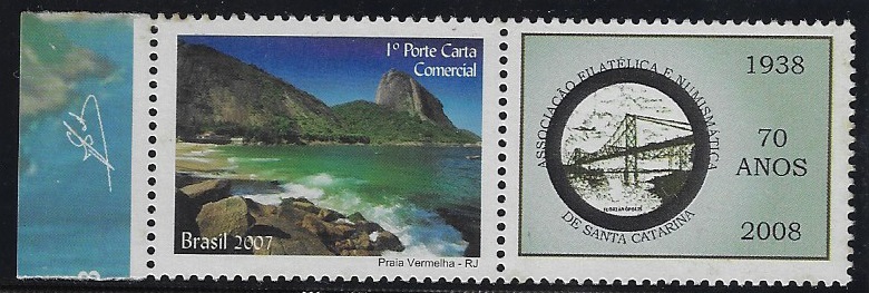 | 81224 | 2702, selo personalizado Praia Vermelha, no Rio de Janeiro, emitido em 2008 alusivo aos 70 Anos da Associação Filatélica e Numismática de Santa Catarina, Ponte Hercílio Luz | 10,00 | Foto |