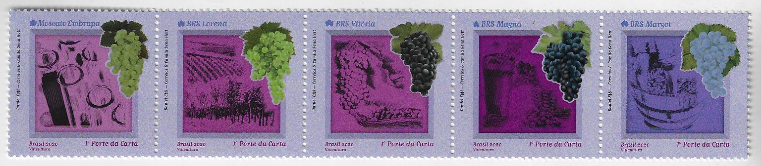 | 81566 | Série completa em tira horizontal com 5 selos Viticultura, Bebida, Vinho, Uva | 23,00 | Foto |