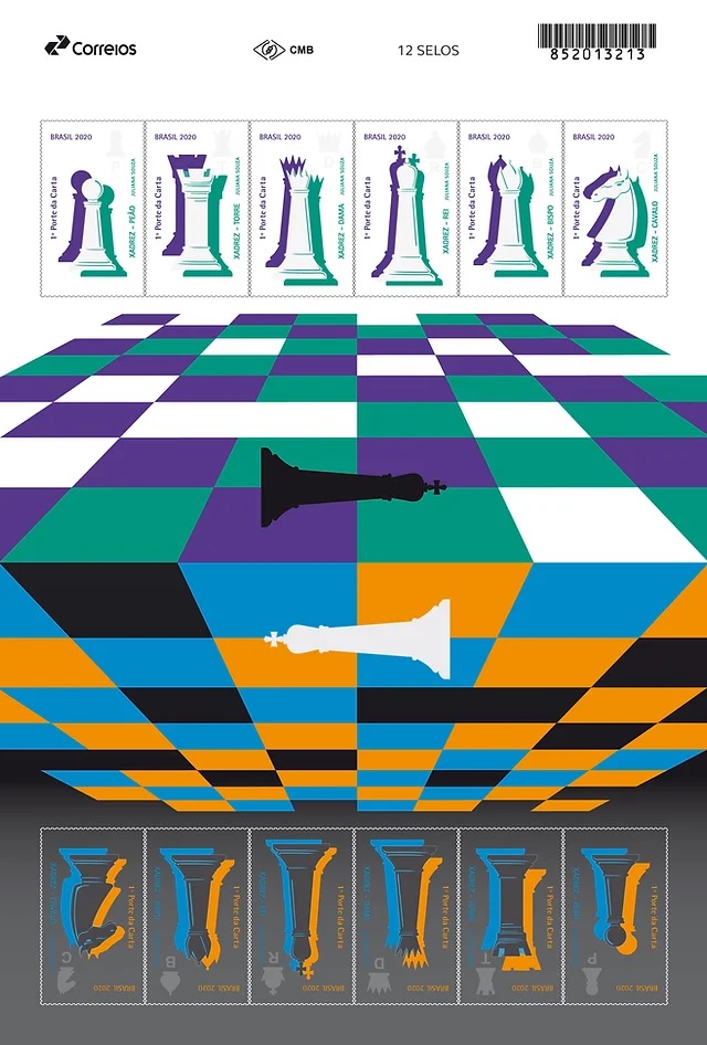 | 81601 | Folhinha comemorativa Xadrez, Peão, Torre, Dama, Rei, Bispo, Cavalo, Tabuleiro, mint | 45,00 | Foto |
