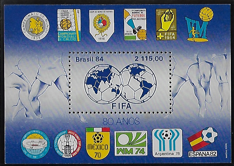 | 84068 | 2532, Centenário de Fundação do Grêmio Futebol Portoalegrense, folha completa de selos com a personalização em branco, mint | 550,00 | Foto |