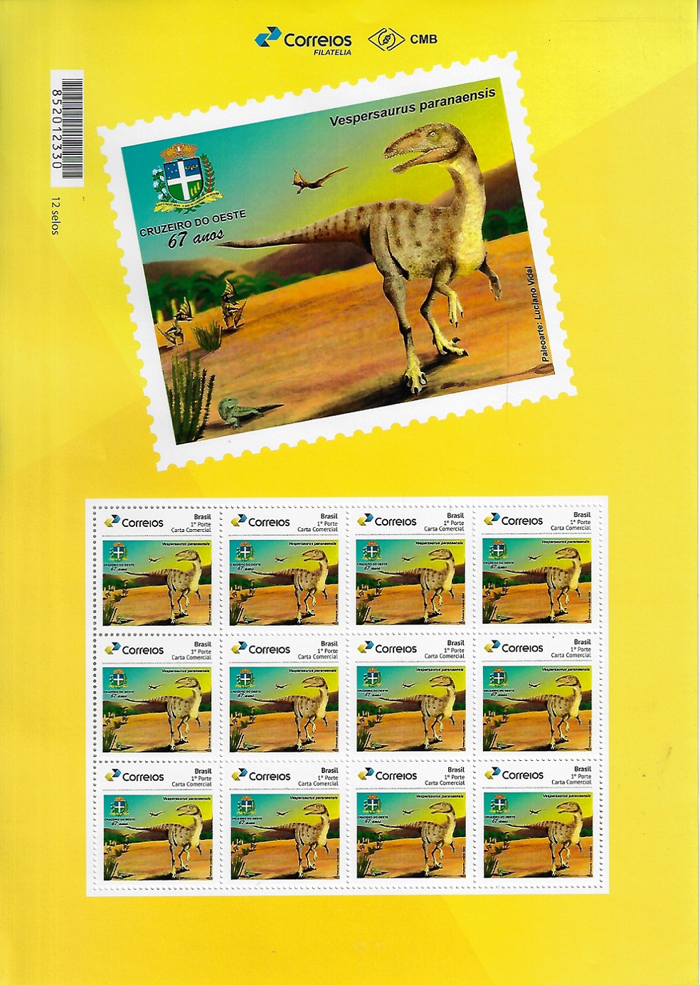 | 82150 | Folha completa emitida em 2019 com 12 selos personalizados básicos alusivos ao dinossauro Vespersaurus paranaensis, Fauna, Réptil, Pré-Histórico | 80,00 | Foto |