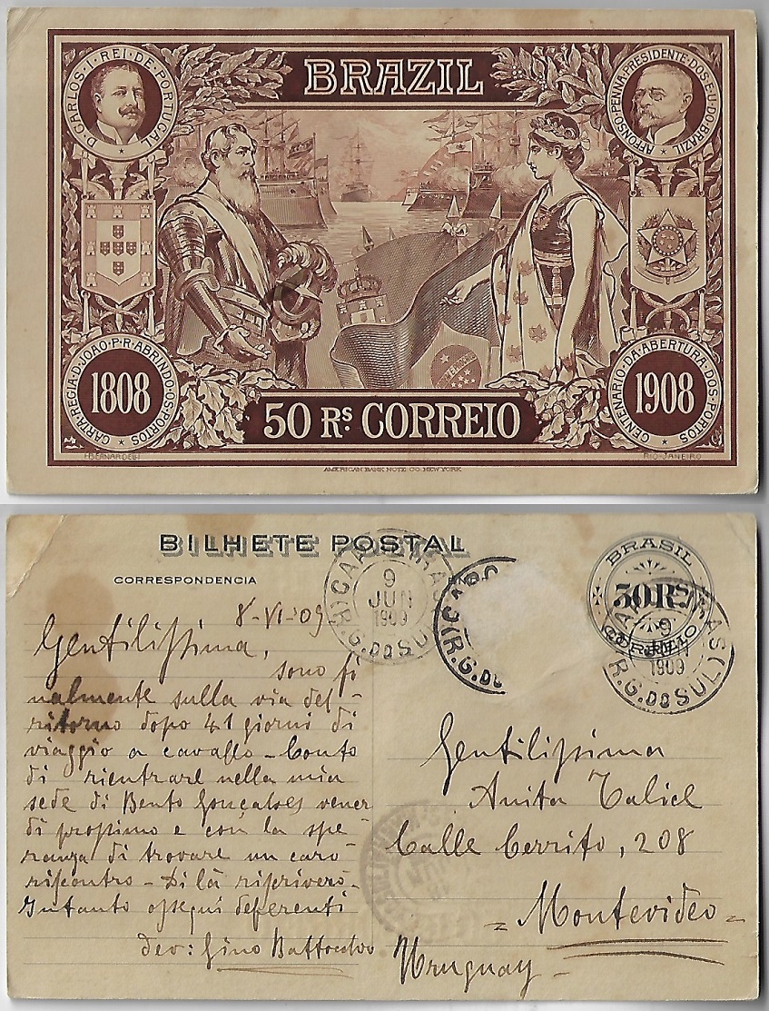 | 77424 | 7, Exposição Nacional e Centenário da Abertura dos Portos, Efígie da República e Pão-de-Açúcar, 100 Réis, carimbo "Iraty (Paraná)", mínimo aminci, topônimo "Irati" significa "Rio do Mel" | 10,00 | Foto |