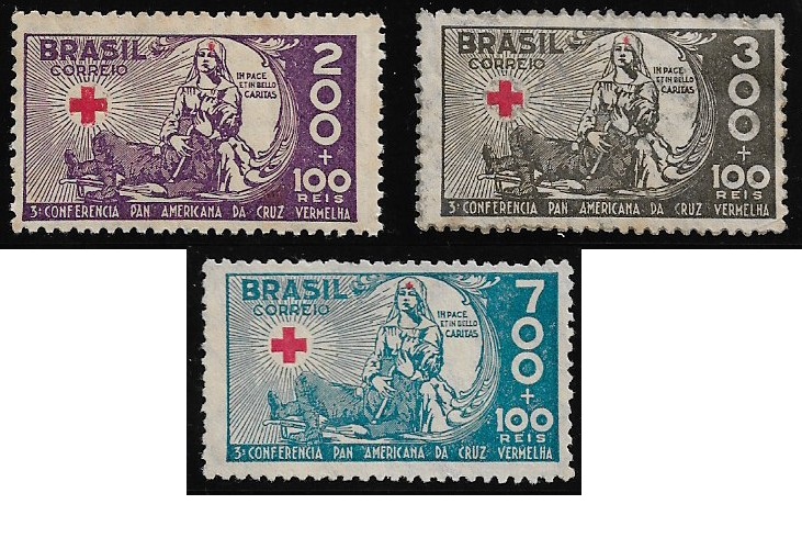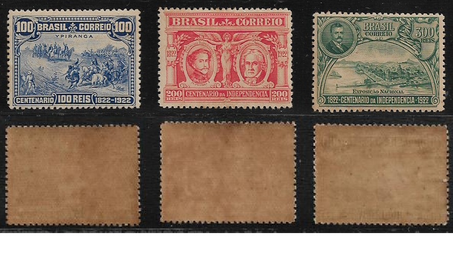 | 83844 | 10, 11 e 13, Tricentenário de Cabo Frio, Tricentenário de Belém e Visita do Rei Alberto I da Bélgica, novos com goma amarelada ou em goma (catálogo 37,5 UF) | 38,00 | Foto |