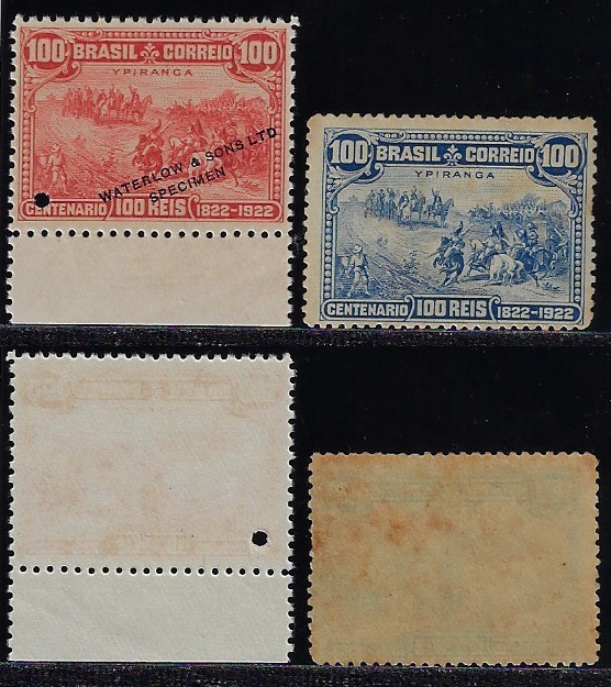 | 83222 | 14, Centenário da Independência do Brasil, furo e sobrestampa Waterlow & Sons Ltd Specimen e selo emitido sem uso com goma amarelada | 193,00 | Foto |