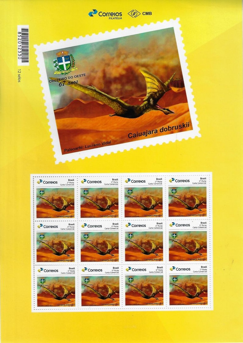 | 83345 | Folha completa emitida em 2019 com 12 selos personalizados básicos alusivos ao dinossauro Caiuajara dobruskii, Fauna, Réptil, Pré-Histórico | 80,00 | Foto |