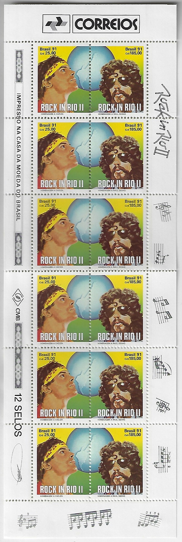 | 83483 | 1719/1720, Festival de Música Rock in Rio II, Homenagem aos cantores Cazuza e Raul Seixas, folha completa com 6 pares se-tenant, mint, margem de folha com várias notas músicas (8,40 UF) | 12,00 | Foto |