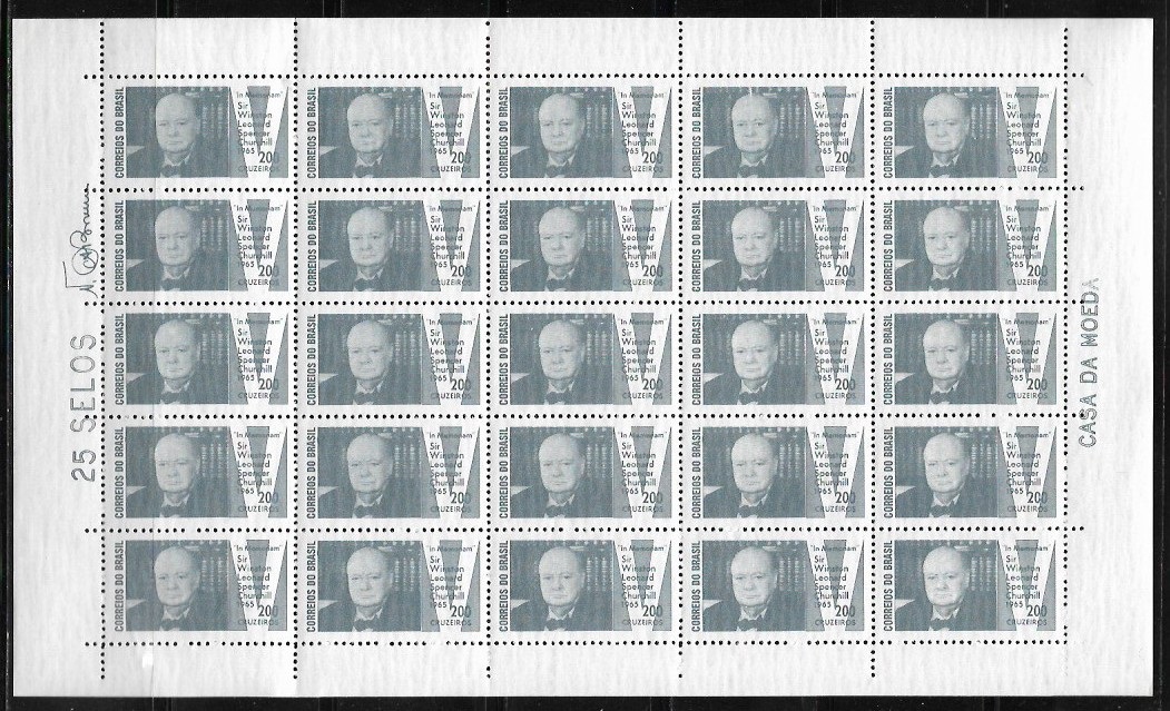 | 83652 | 532Y, In Memoriam a Sir Winston Churchill, folha completa com 25 selos em papel marmorizado, novo com goma (300 UF) | 300,00 | Foto |