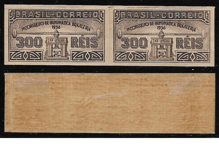 | 83755 | 105SD, 1º Congresso de Numismática Brasileira em São Paulo, antiga máquina de cunhar, par sem denteação em papel mais grosso com goma e marca de charneira ou Prova | 215,00 | Foto |