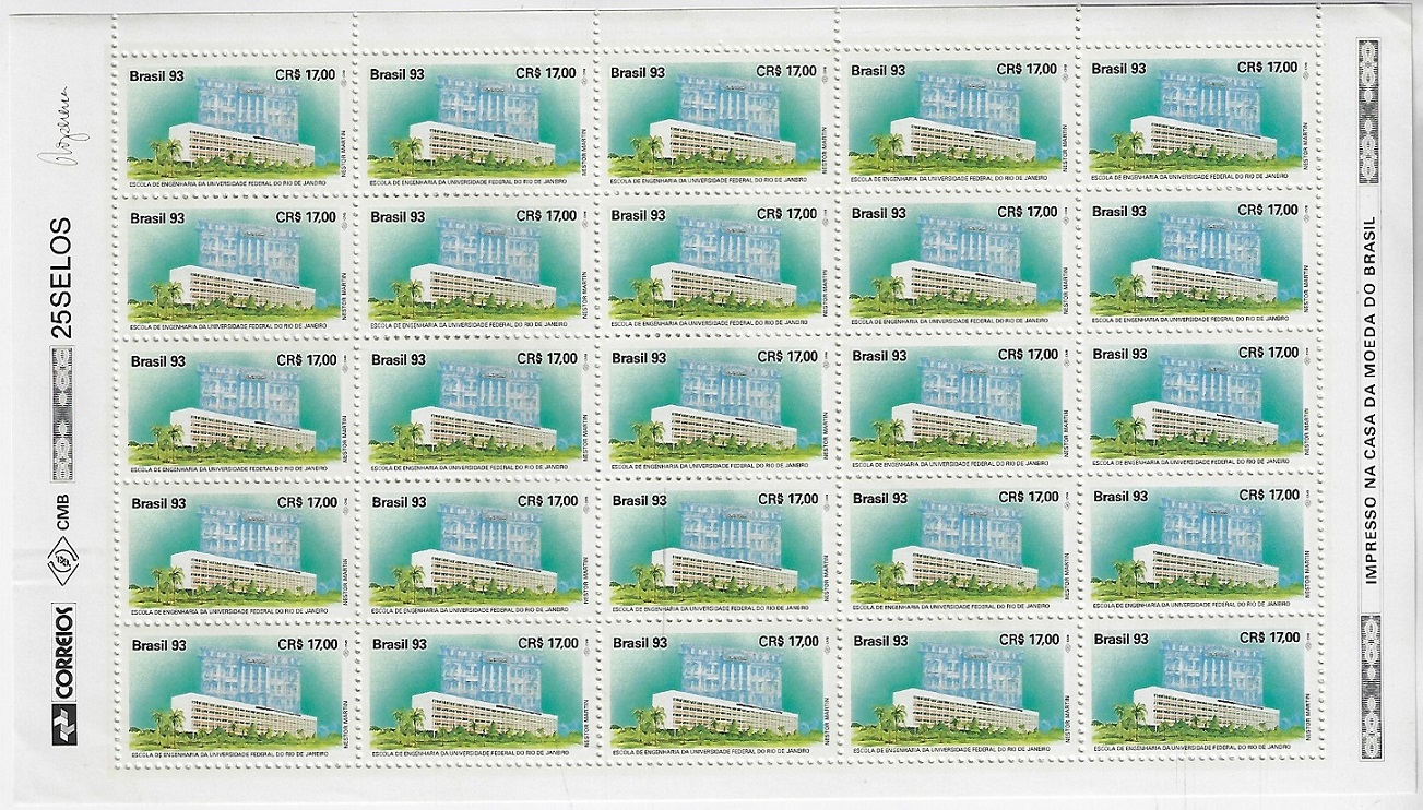 | 83993 | 1860, Escola de Engenharia da Universidade do Rio de Janeiro, folha completa, mint (10 UF) | 13,00 | Foto |
