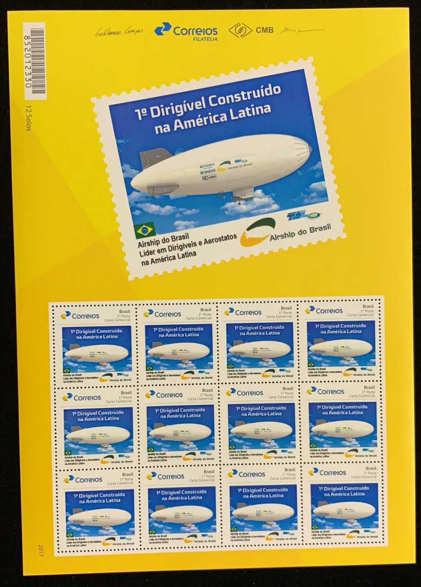| 84898 | PB-70, folha completa emitida em 2017 com 12 selos personalizados básicos alusivos ao 1º Dirigível construído na América Latina, mint | 80,00 | Foto |