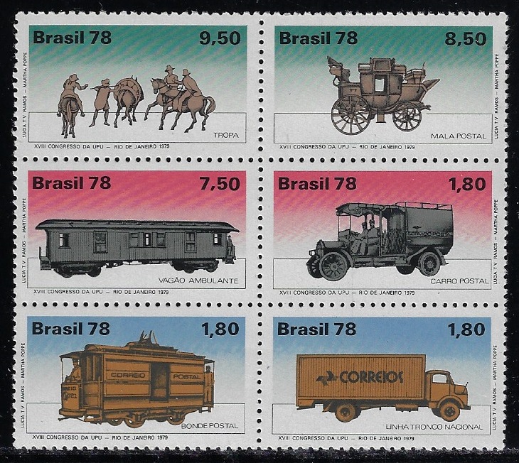 | 84937 | 1060/1065, Evolução dos Transportes Postais, série completa em se-tenant, mint (3 UF) | 3,00 | Foto |