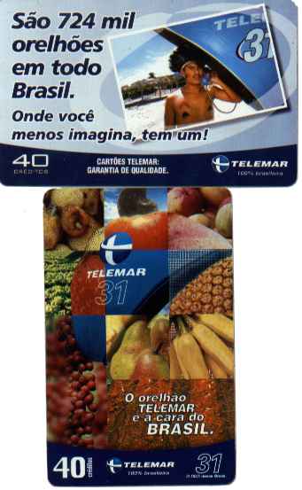 | 15348 | Telemar MG, 2 Cartões Telefônicos "O orelhão Telemar é a cara do Brasil" e "São 724 mil orelhões em todo Brasil", tiragens 3.750 e 9.000, usados | 3,00 | Foto |