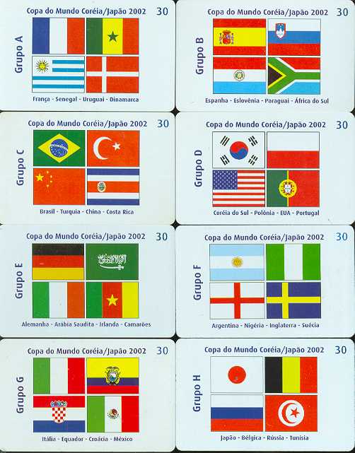 | 842 | Brasil Telecom, 16 Cartões Telefônicos das séries "Copa do Mundo 2002", ICE e Interprint (completas), usados | 5,00 | Foto |