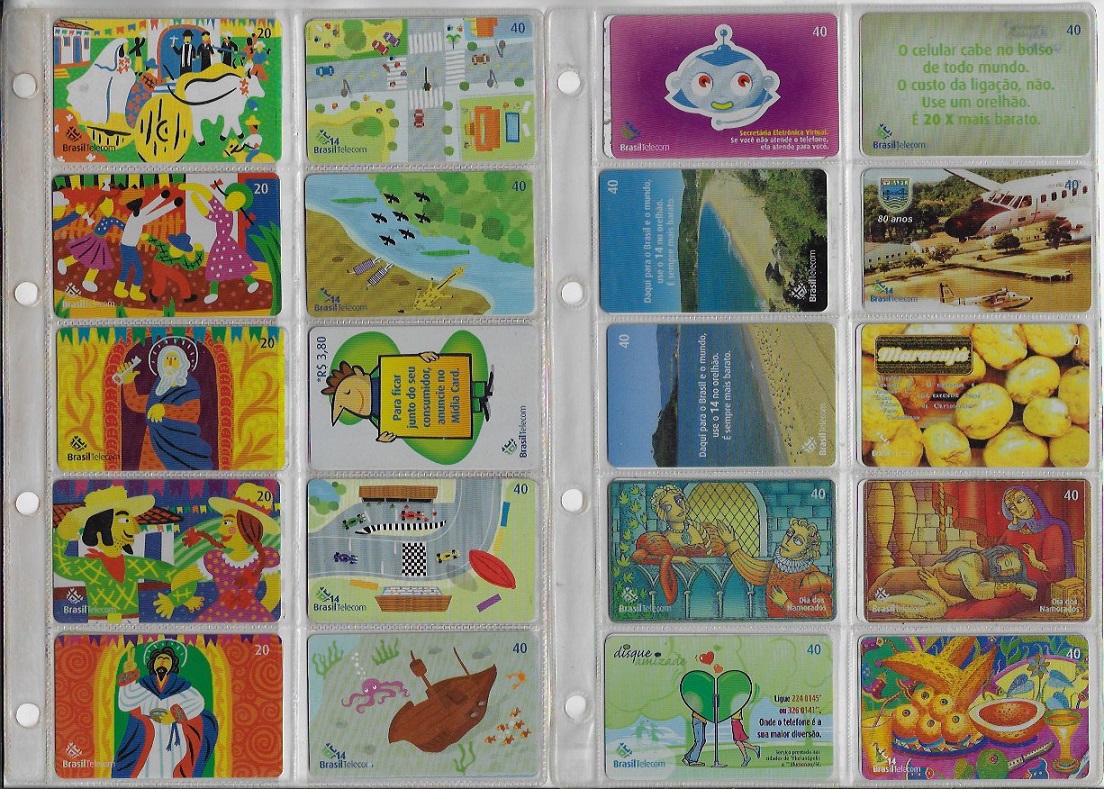 | 2994 | Brasil Telecom, 200 Cartões Telefônicos diferentes, usados, montados em 10 folhas plásticas | 36,00 | Foto |