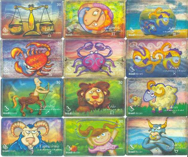 | 42056 | Brasil Telecom, 12 Cartões Telefônicos da série "Signos" (completa), 2002, usados | 9,00 | Foto |
