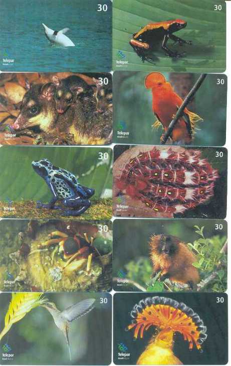 | 42079 | Telepar, série completa com 10 Cartões Telefônicos entitulada "Curiosidades", Animal, Fauna, 2001, usados | 10,00 | Foto |