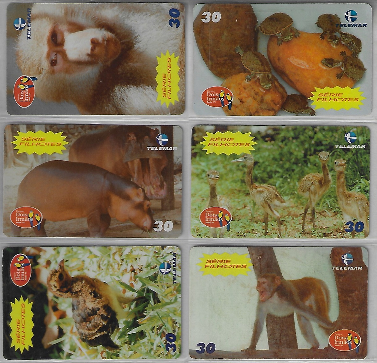 | 42099 | Telemar PE, 2001, série completa com 6 Cartões Telefônicos "Filhotes", tiragem 200.000, usados | 3,00 | Foto |