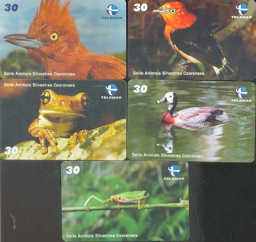 | 45717 | Telemar CE, 5 Cartões Telefônicos da série "Animais Silvestres Cearenses", completa com 5 Cartões Telefônicos, usados | 5,00 | Foto |
