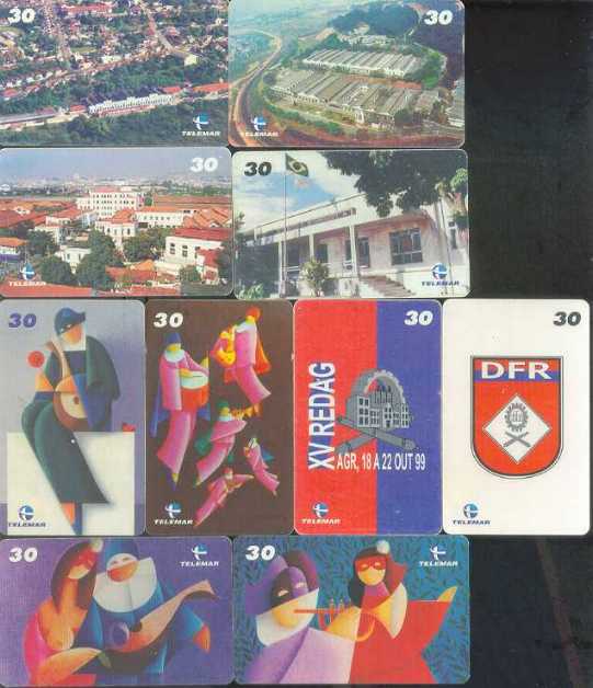 | 45719 | Telemar RJ, 10 Cartões Telefônicos das séries "Um momento na arte brasileira" e "Banda SPC" (completas com 6 e 4 Cartões Telefônicos), usados | 3,00 | Foto |