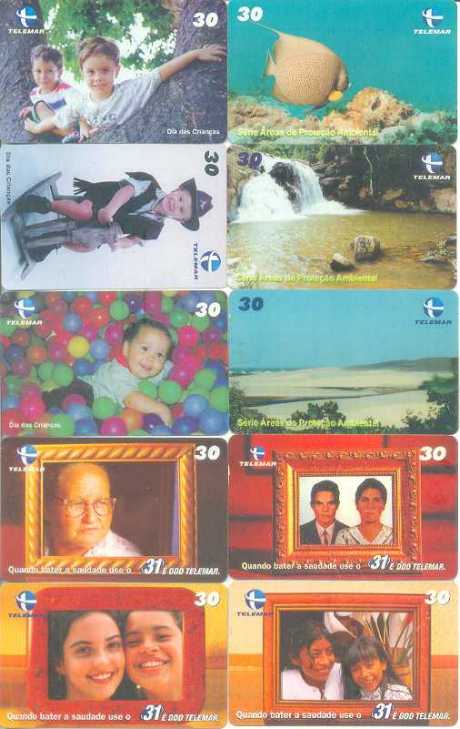 | 45743 | Telemar, 10 Cartões Telefônicos das séries "Áreas de Proteção Ambiental", "Dia das Crianças" e "Quando bater a saudade use o 31" (completas com 3, 3 e 4 Cartões Telefônicos), usados | 3,00 | Foto |