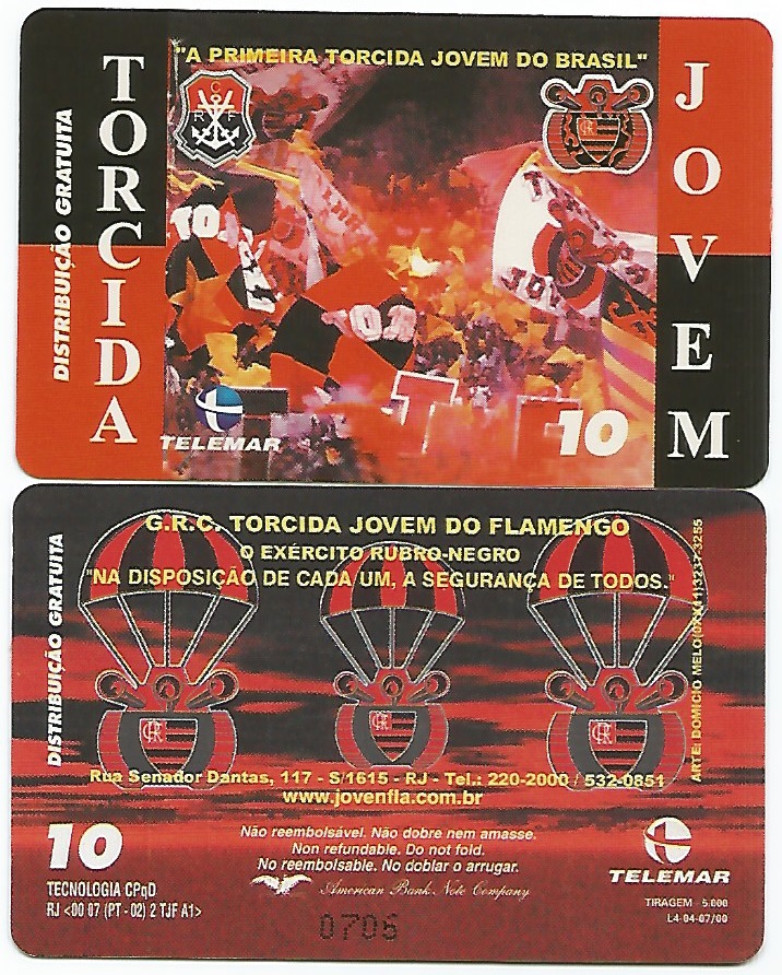 | 68866 | Telemar, 1 Cartão Telefônico alusivo ao Flamengo - Torcida Jovem, tiragem 5.000 | 6,00 | Foto |