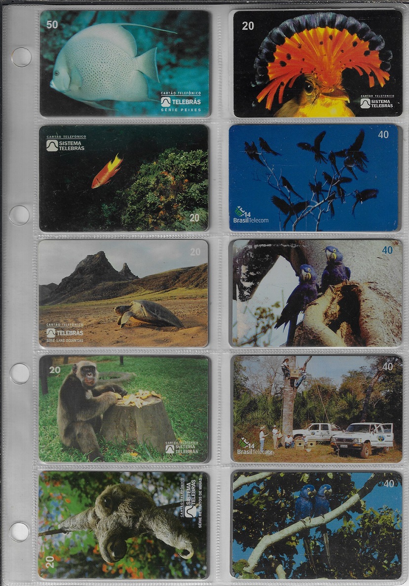 | 7548 | Acumulação, 100 Cartões Telefônicos diferentes do tema Fauna, várias operadoras, todos usados e montados em 5 folhas plásticas para cartões | 31,00 | Foto |