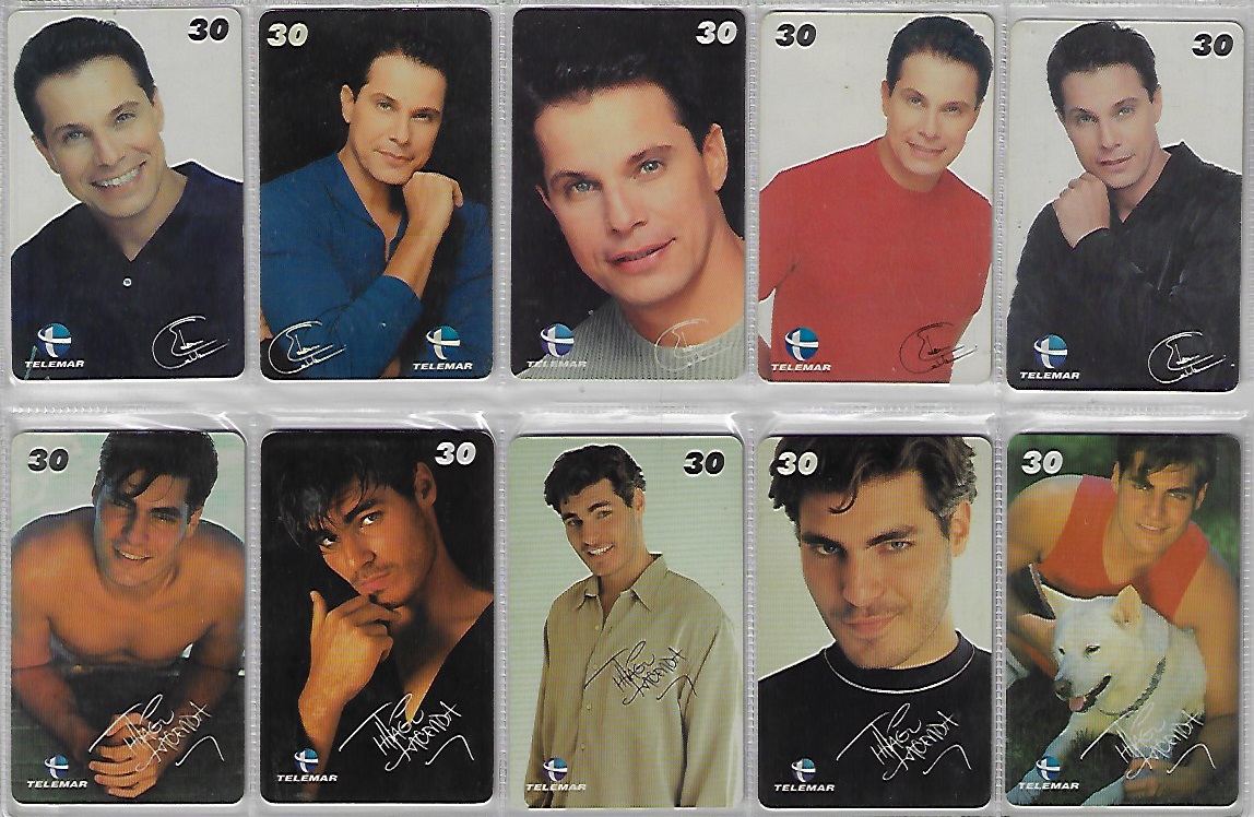 | 83611 | Telemar, 10 cartões telefônicos das séries Edson Celulari e Thiago Lacerda, tiragens 20.000 e 100.000, completas, usados | 28,00 | Foto |