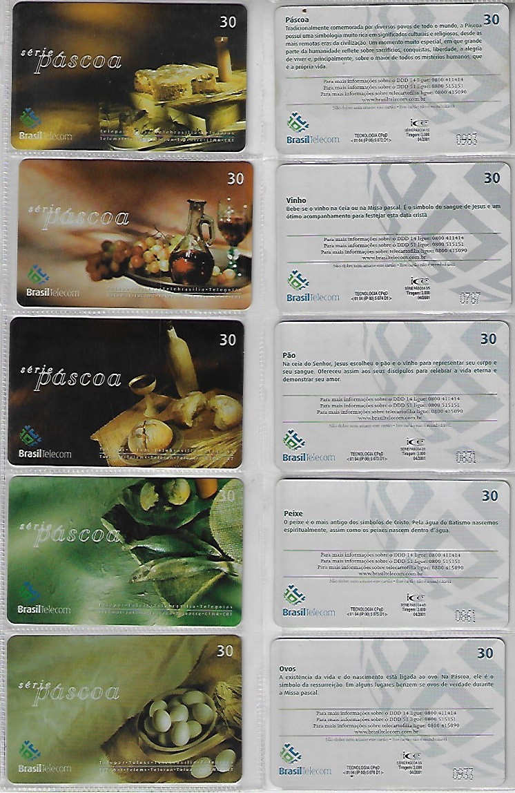 | 83613 | Brasil Telecom, 5 cartões telefônicos da série "Páscoa", tiragem 3.000, completa, usados | 99,00 | Foto |