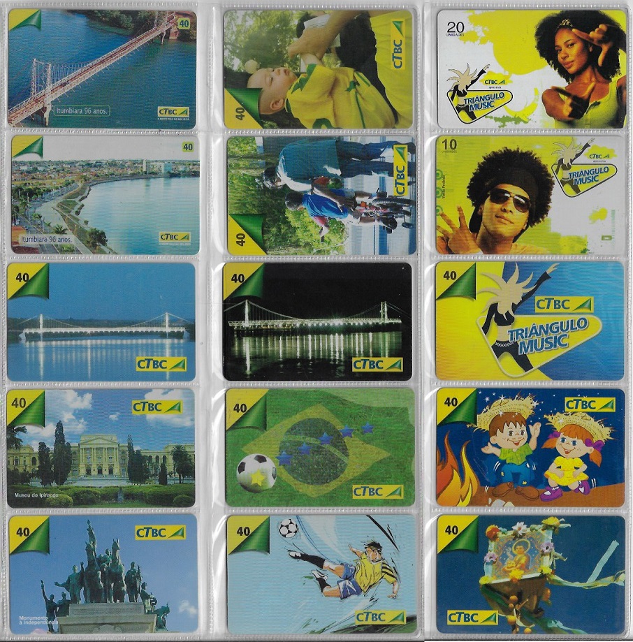 | 83617 | CTBC, 15 cartões telefônicos diferentes, sendo 1 com tiragem 5.000, 2 com tiragem 10.000 e 2 com tiragem 20.000, usados | 25,00 | Foto |