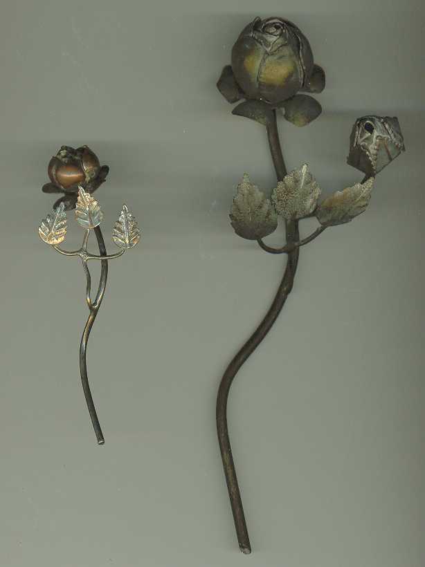 | 31848 | Brasil, 1960s, 2 rosas feitas em metal, tamanhos 11 e 20 cm | 18,00 | Foto |
