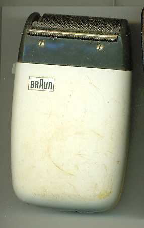 | 31849 | Brasil, 1960s, aparelho elétrico para barbear, marca Braun, funcionando 110/220 V, no estojo de couro, parte da proteção metálica junto as lâminas está quebrada | 18,00 | Foto |