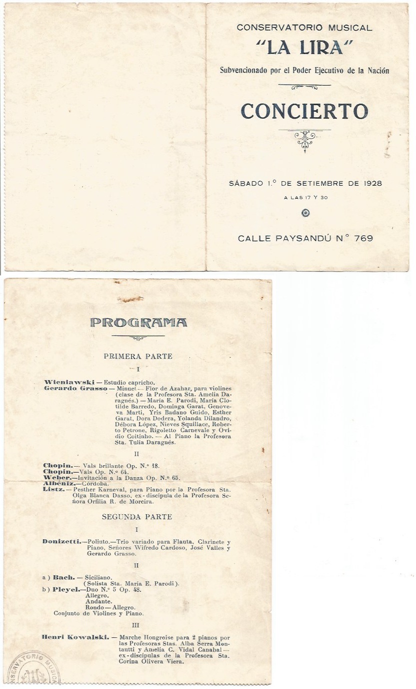 | 20155 | Uruguai, 1928, programa de concerto musical oferecido pelo Conservatório Musical "La Lira" | 6,00 | Foto |
