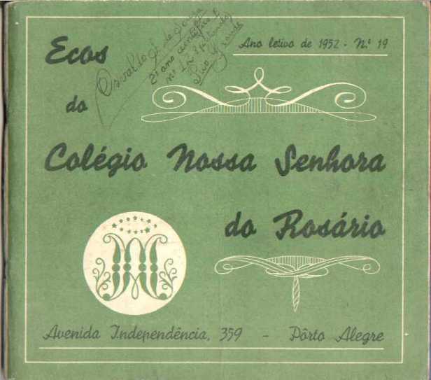 | 28033 | Brasil, 1952, livreto "Ecos do Colégio Nossa Senhora do Rosário", de Porto Alegre, bastante ilustrado, algumas propagandas, 120 páginas, pequenos senões | 43,00 | Foto |