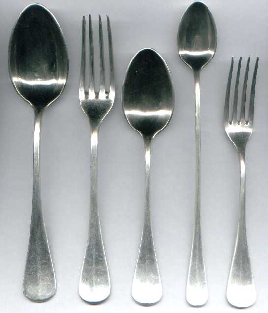 | 30738 | Alemanha, 1900s, 5 talheres diferentes com a gravação "Gebr. Hepp 90" (Irmãos Hepp folheado em prata 90), tamanhos entre 18 e 22 cm | 40,00 | Foto |