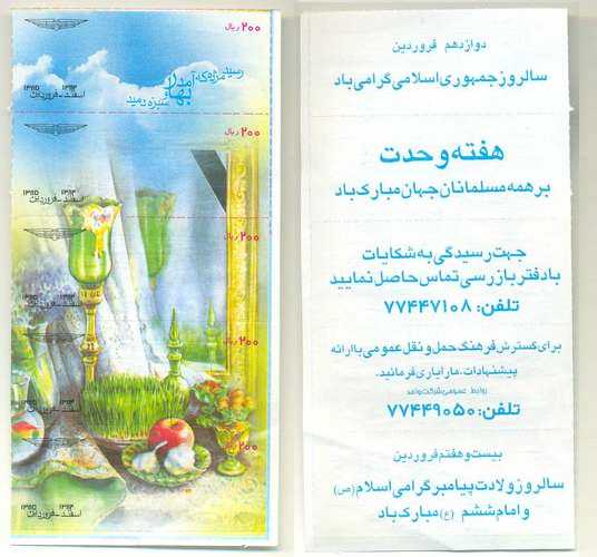 | 36000 | Irã, 1980s, tira com 5 passes para uso no transporte coletivo | 24,00 | Foto |