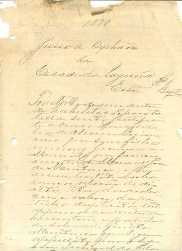 | 39291 | Brasil, 1890, 114 folhas (páginas 1 a 114) de livro de registro do Juízo de Órfãos da Cidade de Laguna, pequenos furos de cupim, sem capa, necessita alguns reforços nas bordas | 100,00 | Foto |