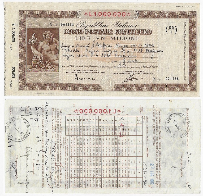 | 40293 | Itália, 1979, bônus postal resgatado em 1982 | 15,00 | Foto |