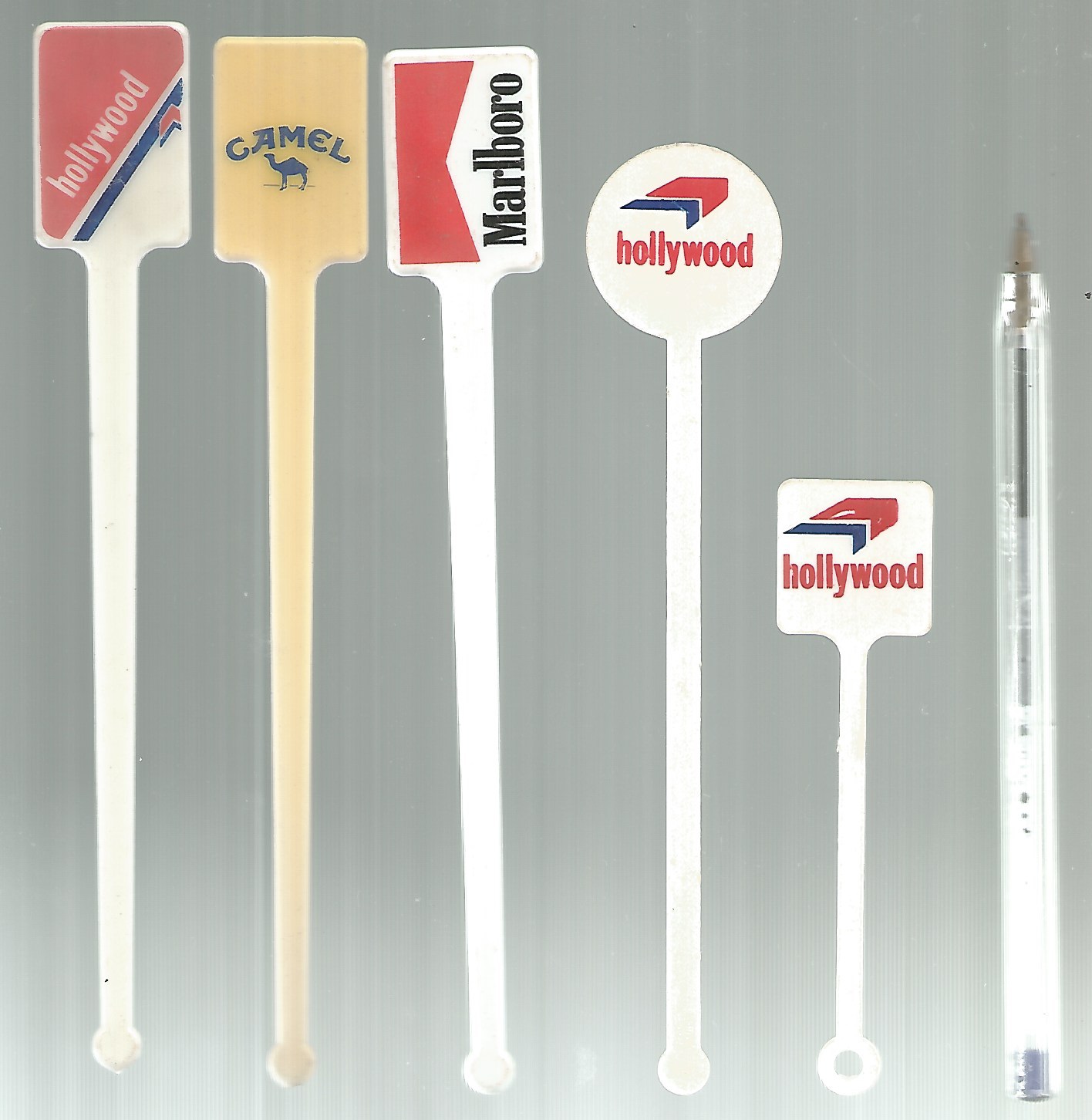 | 56670 | Brasil, 1960s, 5 mexedores de bebidas com propagandas de diferentes marcas de cigarro | 14,00 | Foto |