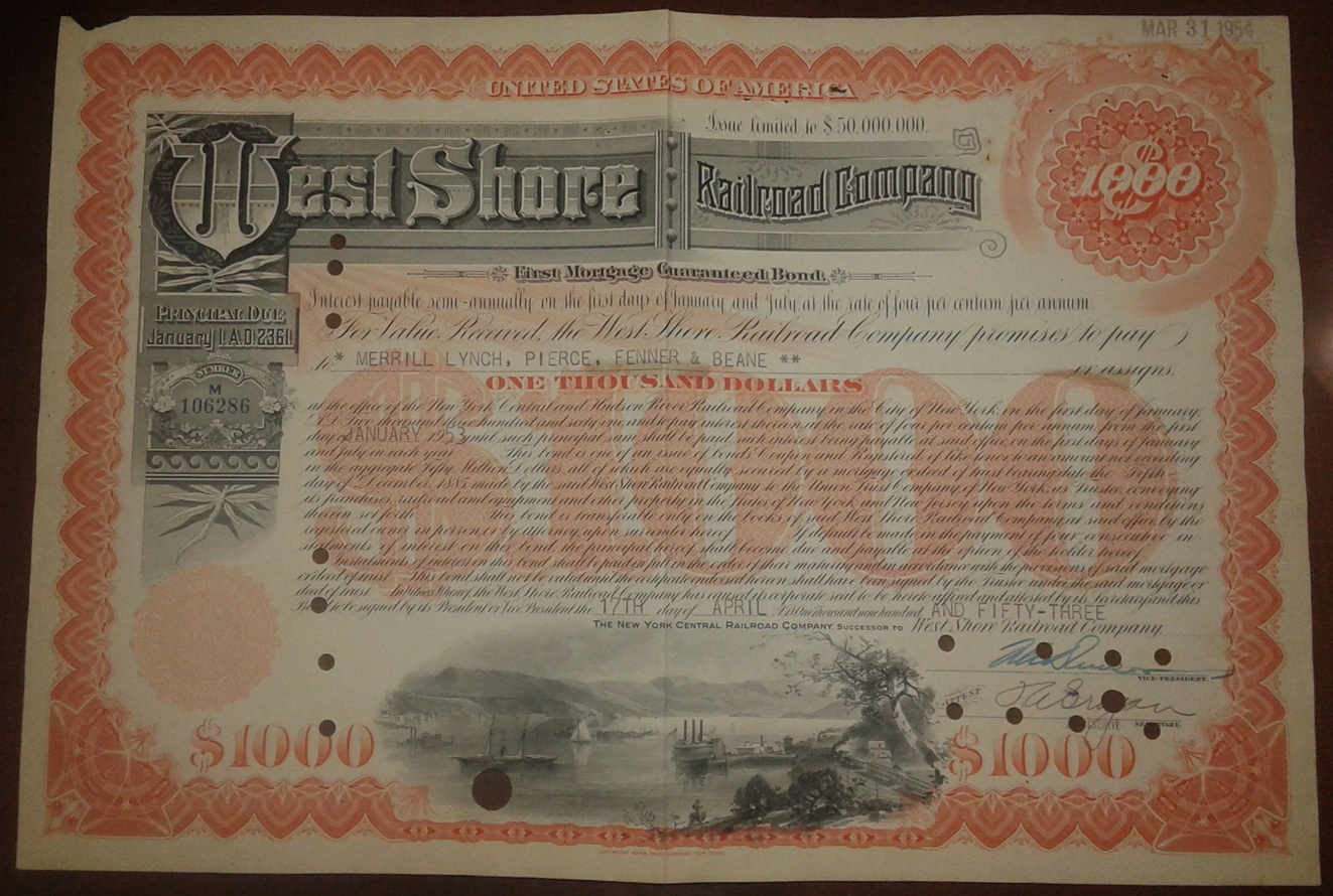 | 65386 | EUA, 1961, ação da empresa The New York Central Railroad Company, borda azul | 15,00 | Foto |