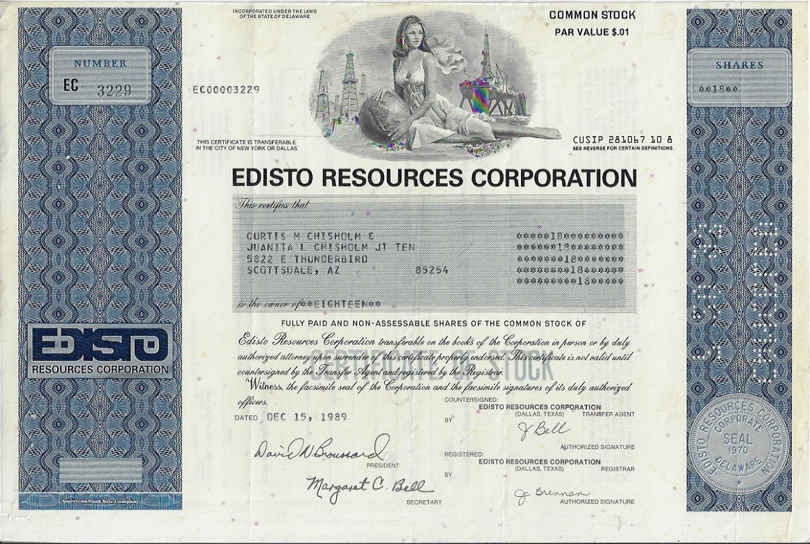 | 65408 | EUA, 1989, ação da empresa Edisto Resources Corporation | 15,00 | Foto |
